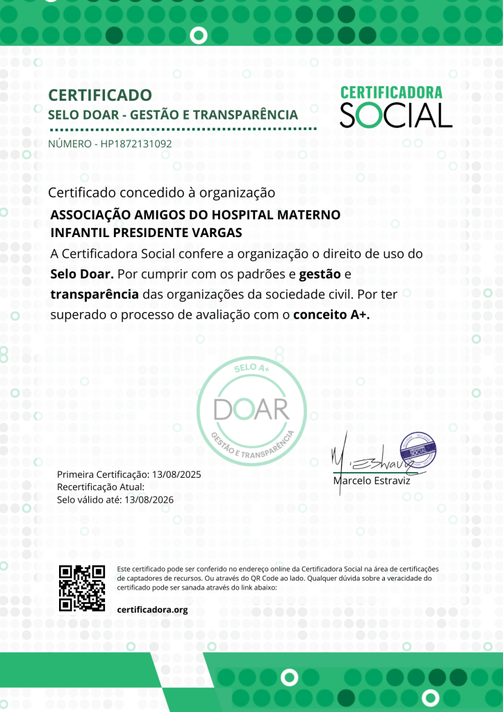 Certificado Associação Amigos do Hospital Materno Infantil Presidente Vargas