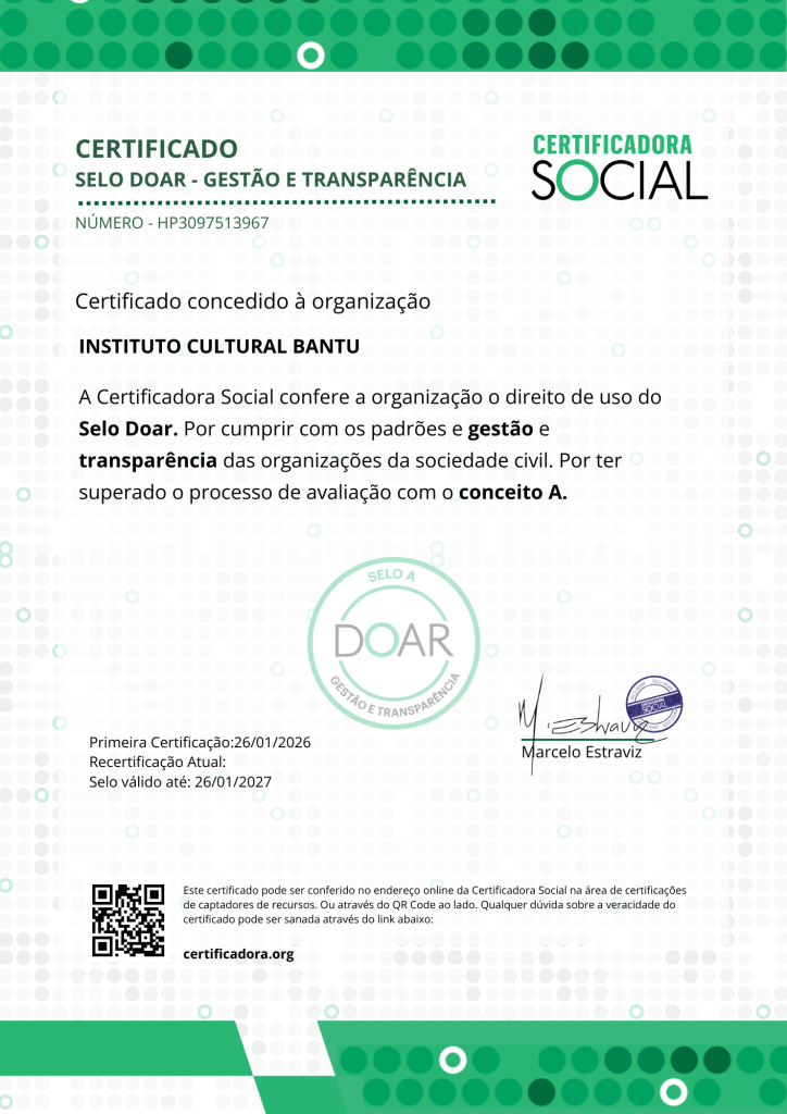 Certificado Instituto Cultural Bantu